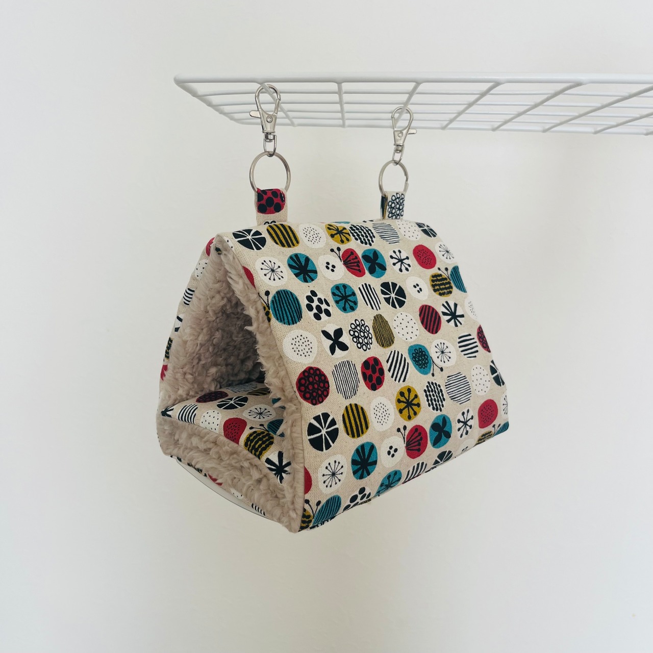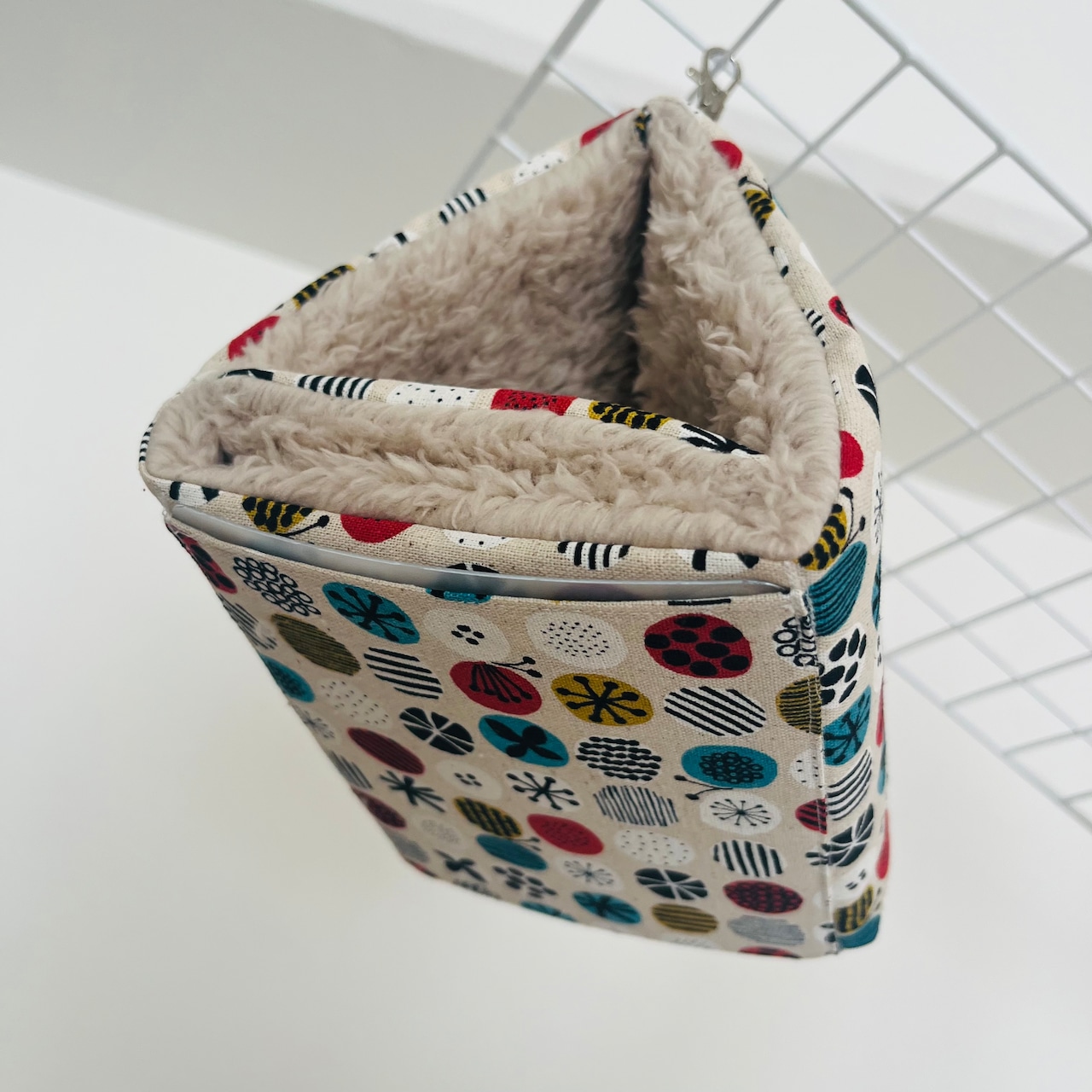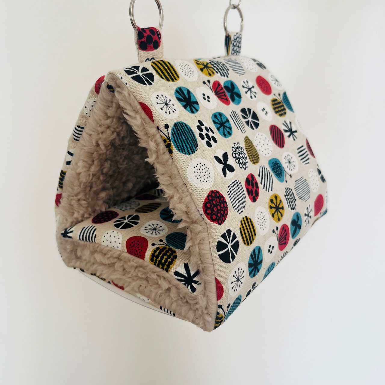 L size カラフル北欧×ベージュ 三角バードテント もこもこ ボア 秋冬用におすすめ お手入れ簡単 外せる底板 敷きパッド1枚付き