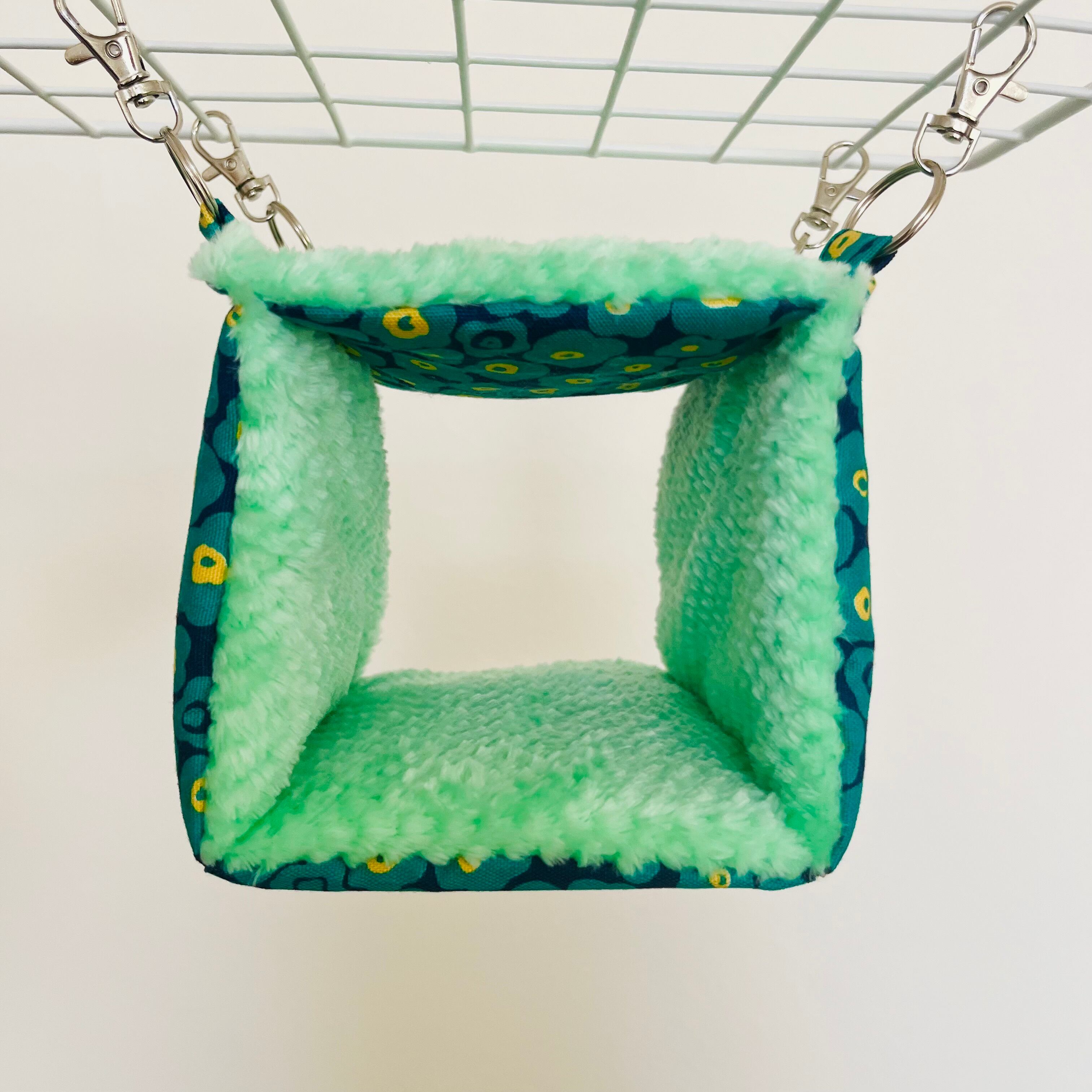 M size お花柄×グリーン 四角バードテント もこもこ ボア 秋冬用におすすめ お手入れ簡単 外せる底板
